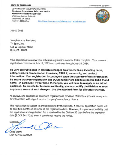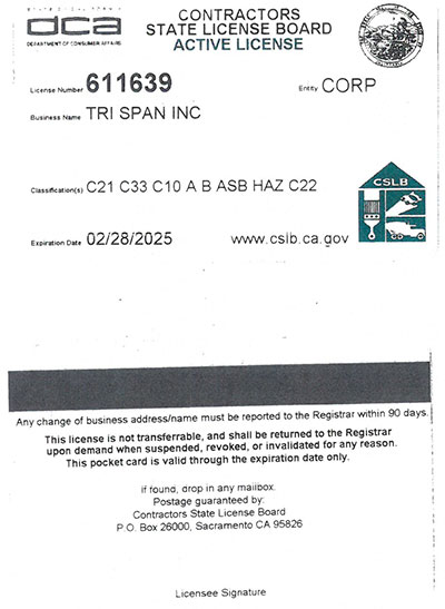Many Southern California homes and buildings still contain dangerous asbestos material. Its removal requires the knowledge of an experienced, licensed company to avoid the associated health and environmental risks. Tri Span Inc offers a variety of services related to asbestos abatement.